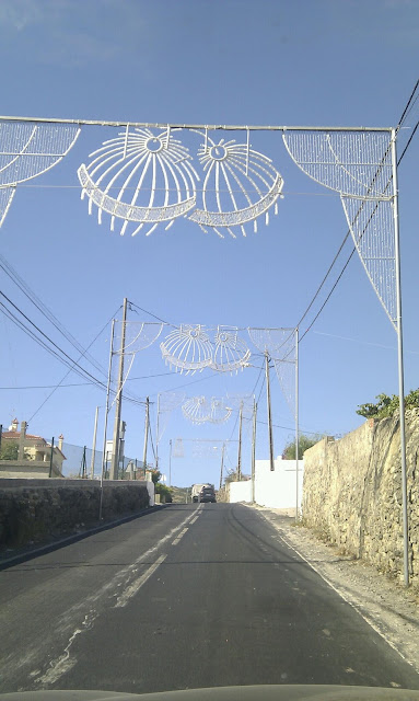À minha frente...o que encontro quando venho do trabalho, pela estrada. Vai haver festa....