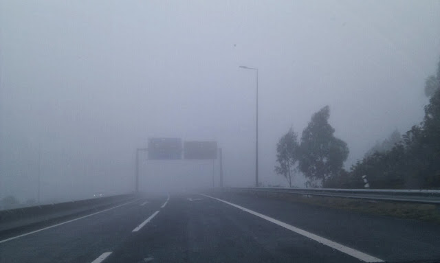 Molhei os pés no percurso do trabalho ao carro depois voltei para o trabalho para descobrir de quem era o veículo que me impedia de sair. Com isto voltei definitivamente para o carro (3x na chuva) com os pés e as calças ensopadas, pois o vento não deixava o chapéu quieto! Chego ao JI molhei-me para ir buscar a M. e de volta ao carro foi lindo de se ver.