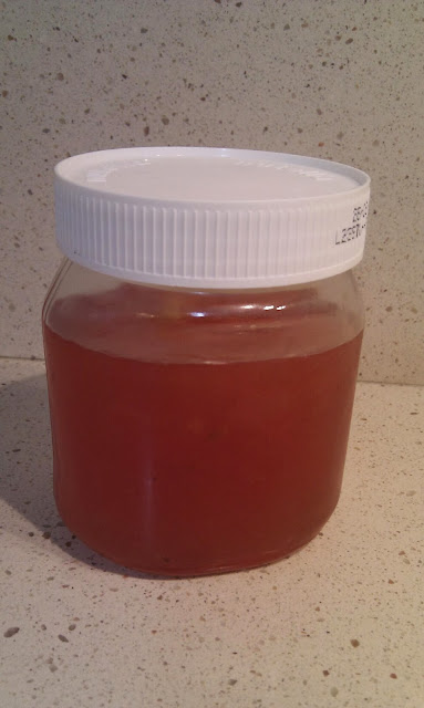 Com os caroços dos marmelos usados na marmelada fiz geleia (pela primeira vez).