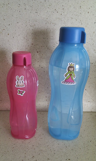 Hoje a piolha deu-lhe para colocar autocolantes nas nossas garrafas. Digam lá se não ficaram fofas?