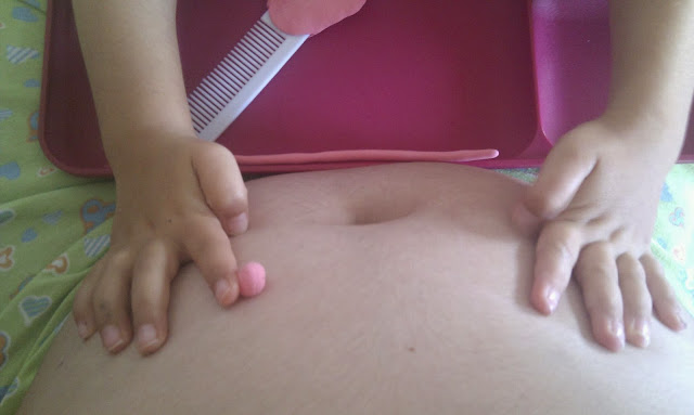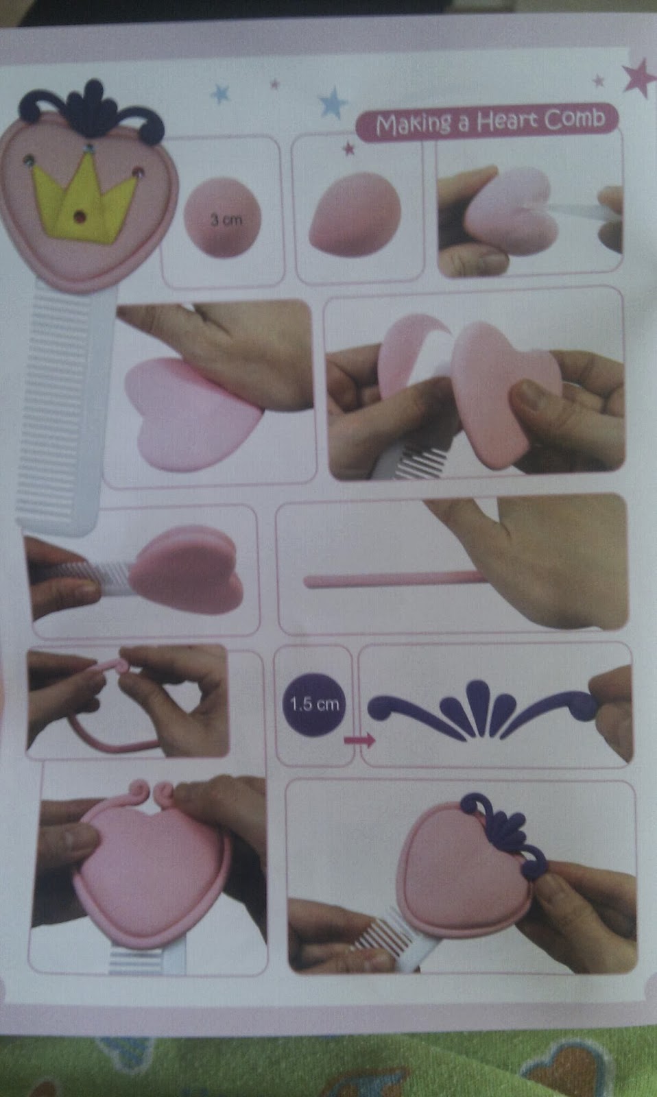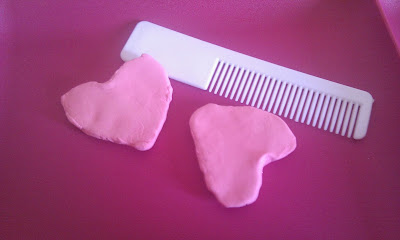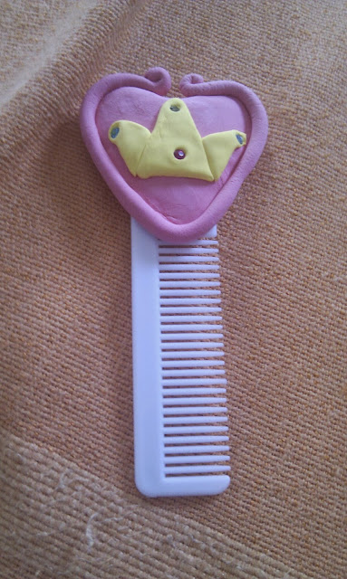 A seguir... brincar pois claro! A M. quis decorar um pente...vamos a isso. Usou o material da Jumpingclay, já aqui referido. Seguiu as instruções e com ajuda, claro, ficou muito fofo.