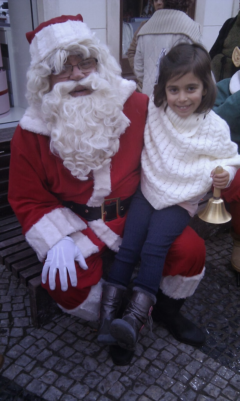 Assim aqui fica uma fotografia da M. com o Pai Natal, que encontrámos numa rua das cidades que adoro passear e fazer compras no comércio tradicional.