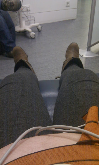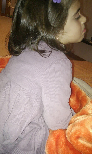 A M. passou a noite com dores de cabeça mas adormecia logo depois de acordar para se queixar. De manhã tinha febre, não comia e estava apática. Não foi à escola, óbvio, e teve sorte de ter cá a avó que ficou com ela enquanto eu fui ao "comando na mão carrega no botão", (isto agora é todas as semanas). Quando cheguei do Hospital apercebi-me que comer nem pensar e a febre subiu, subiu... vai de ben-u-ron ; depois chega o meu irmão (que fez anos...parabéns para ti mano lindo) e o meu pai... e foram buscar o jantar e trouxeram a sobremesa ( que eu de manhã não fiz nada e depois de almoço fui para o Hospital e quando vim quase nem andava); jantámos e a M. até comeu bem (quer dizer qualquer coisa) e cantou os Parabéns e ofereceu um desenho... blá blá...
