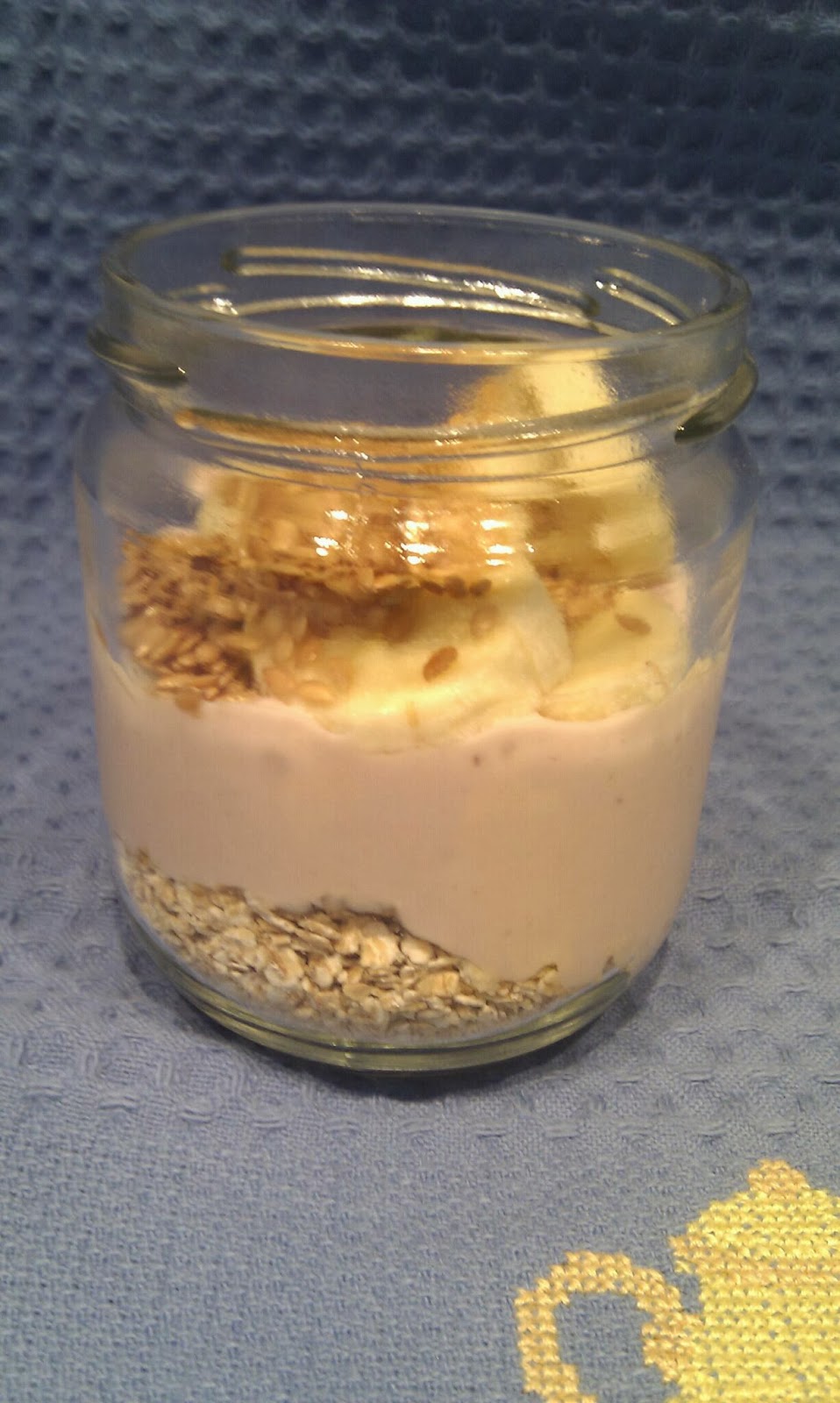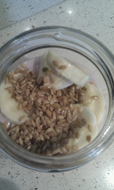 Para começar bem o dia...um iogurte reforçado com aveia, banana e sementes de linhaça.