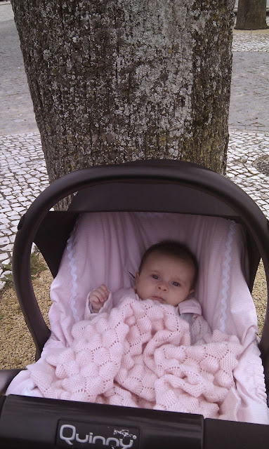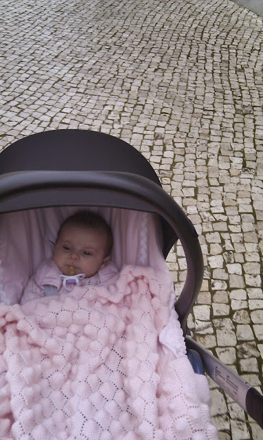 Andava há dias para ir à vila comprar tecido...hoje teve de ser, mas foi uma má escolha. Fazia frio e quase choveu. A Sal, adorou...ia bem quentinha o seu ovinho.