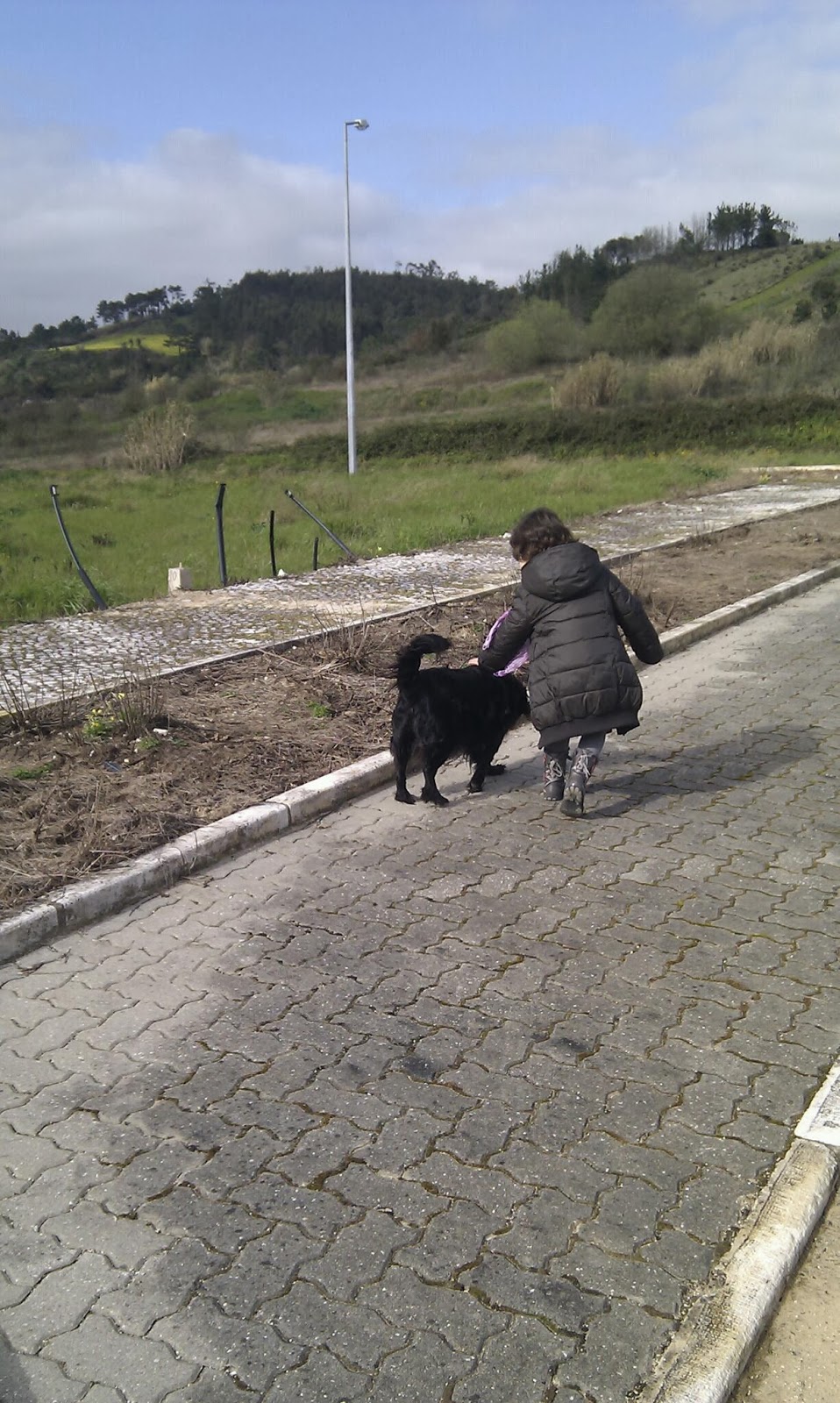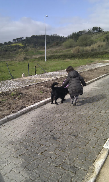 Nas férias do carnaval a Mar. quis ficar na casa dos avós. Lá tem mais espaço e também tem a cadela e a gata. Ela gosta de passear com a cadela e fazer corridas a meio da tarde. A cadela gosta de estar com a piolha e que esta lhe faça festas.