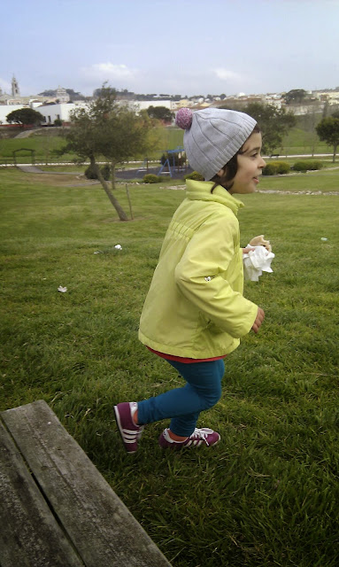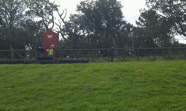 Hoje o dia foi mais vamos-ao-parque-com-o-amigo... Afinal amigo=amizade. Lá os levei a lanchar e a saltar ao parque. Foram rei e rainha e brincaram a isso. Viram uma toupeira e pensaram que era um rato. Correram e gritaram. Eu observava-os e a Sal.mamava...