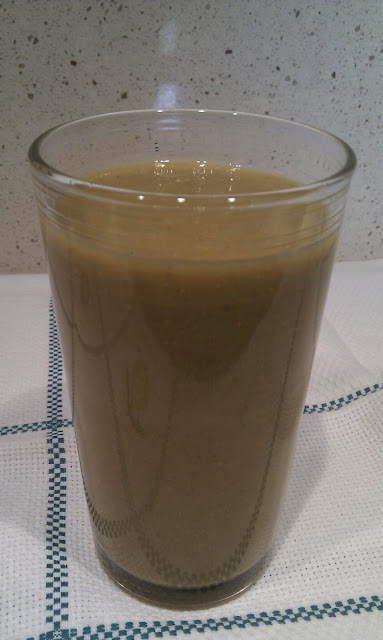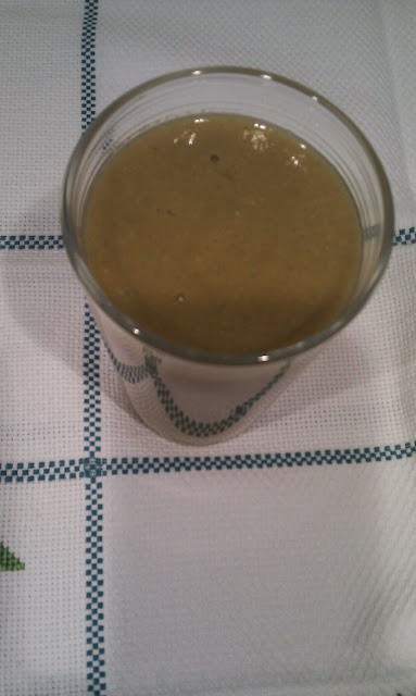 Estavam uns espinafres no frigorifico que sendo pouquinhos eram insuficientes para uma sopa, para uma lasanha, para um esparregado,...Tinha de os usar e meti-os a triturar com uma banana, 2 maçãs, 3 cenouras, sementes de linhaça e de chia, bagas de goji e água.